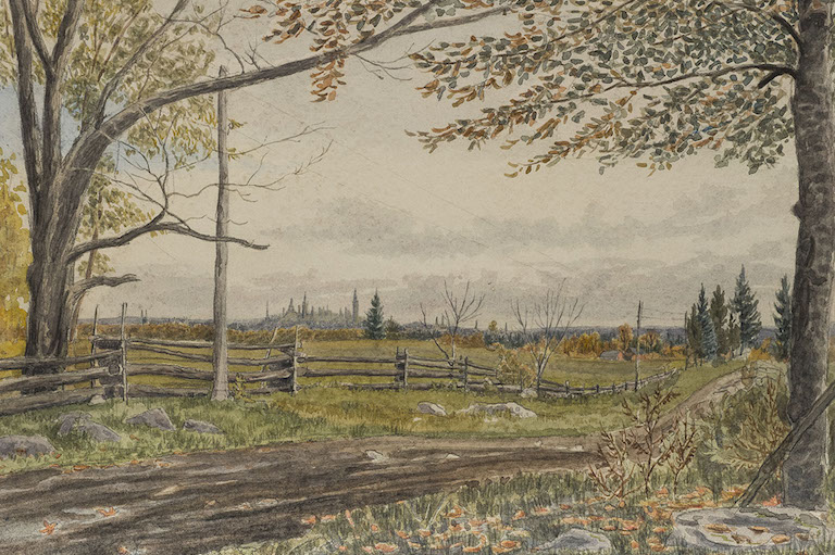 A view of the Quebec countryside with the Parliament buildings in the distance, circa 1900, by Francis Fitz Roy Dixon.Courtesy of Jon Dellandrea -