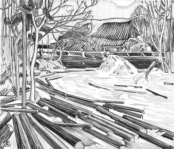 His recent show, Every Picture Tells a Story, presented some two dozen watercolour paintings and drawings, mostly of 20th-century scenes, as part of the Small Works Series at Winnipeg’s McNally Robinson Booksellers. He says the show and launch event gave him the chance to tell stories “directly related to Manitoba and settlement history.”