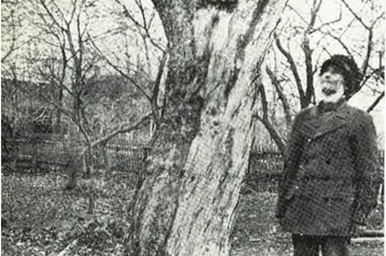 Allan McIntosh with the original McIntosh Red tree around the time it was damaged by fire in the 1890s. -