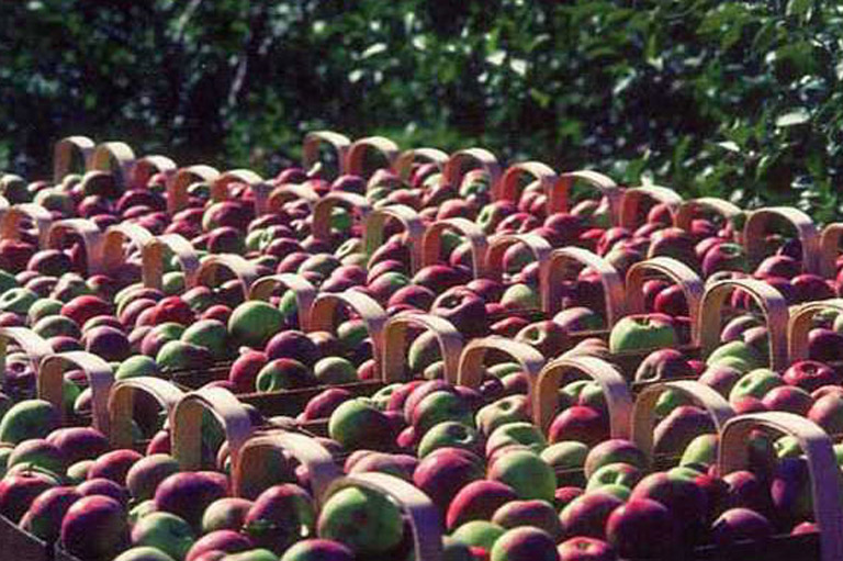 Apple harvest at Abboysford, Quebec, 1930s.Library and Archives Canada -