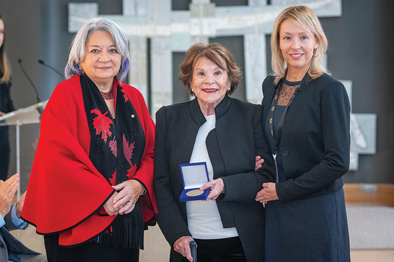 Left to right: Governor General Mary Simon and 2021 award recipients Janette Bertrand and Annie-Kim Gilbert.PHOTOGRAPH BY ANDREW WORKMAN