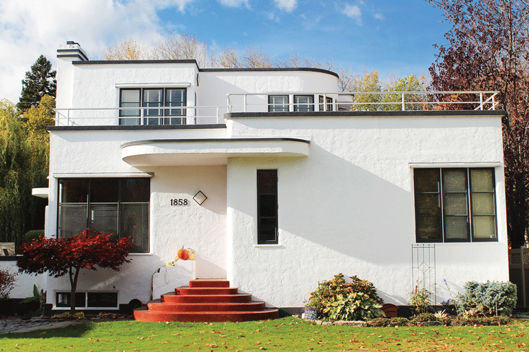 The second G.D. Loane house in Kelowna, B.C., features curved steps and a canopy that echo the curved outer wall on the second floor.Photo Tim Morawetz -
