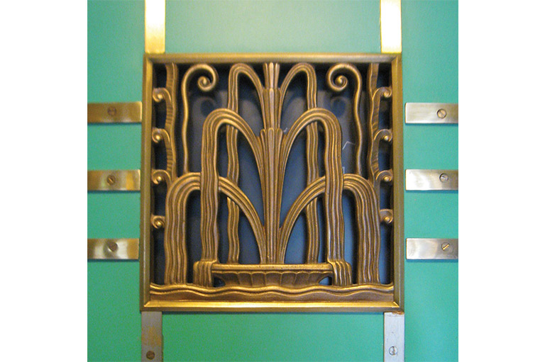 A brass detail in the elevator of the Federal Building in Regina is an example of the frozen-fountain motif.Photo Tim Morawetz -