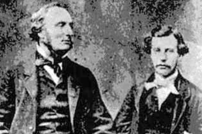John Palliser (at left), sportsman and heir to an Irish landowner, explored western Canada for nearly three years, from 1857 to 1860, as the instigator and leader of the Palliser Expedition.Library and -