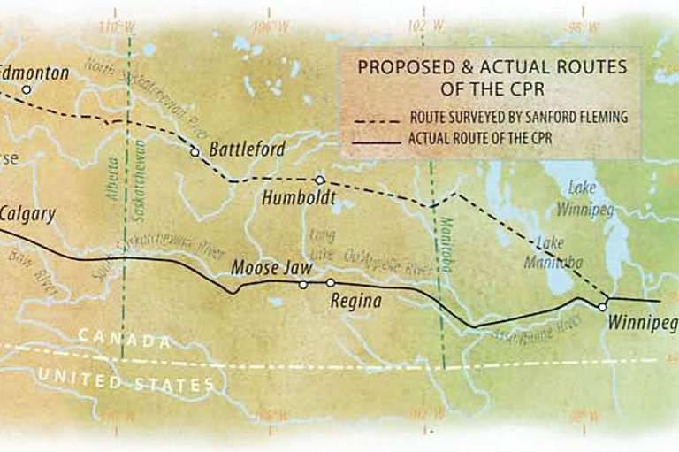 Proposed and actual routes of the Canadian Pacific Railway.Dawn Huck