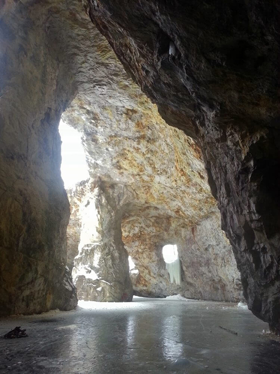 Situated inside a hollowed-out hill and stabilized by rock pillars, the Wallingford-Back Mine is a unique, semi-natural former mine site. It was first exploited by miners in 1924 to produce feldspar and quartz, and would later become one of the largest mines in North America. The site was permanently closed in 1970, and has since become a natural treasure and tourist destination, popular with paddlers in the summer and skaters in the winter.