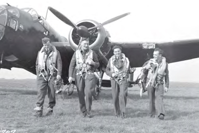 Members of a Canadian bomber squadron are shown in front of their Hampden aircraft in Canada in 1941.Library and Archives Canada E011213294 -