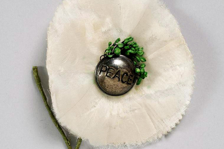 This white poppy was issued pre-1939 by the Peace Pledge Union. It belonged to Ms A.E. Wood who was a conscientious objector.Imperial War Museums