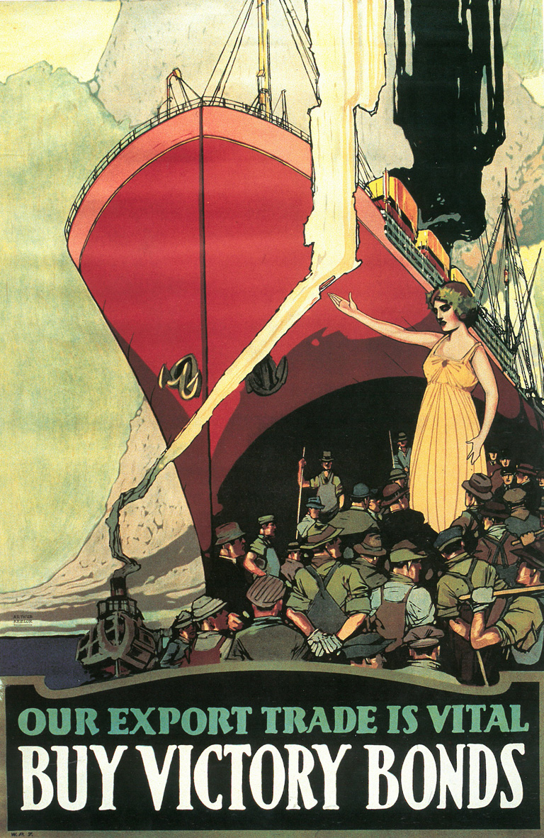 Poster depicts a cargo ship: "Our Export Trade is Vital. Buy Victory Bonds."Library and Archives Canada -