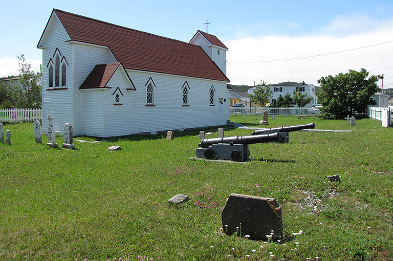 The Anglican church and graveyard in Placentia. Several Basque headstones have been found here, making it a likely burial place for Domingo de Luca.Placentia Area Historical Society -