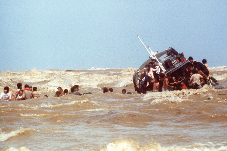 Vietnamese refugees scramble from a sinking boat at Kuala Terengganu, Malaysia, in December 1978.The Canadian Press -
