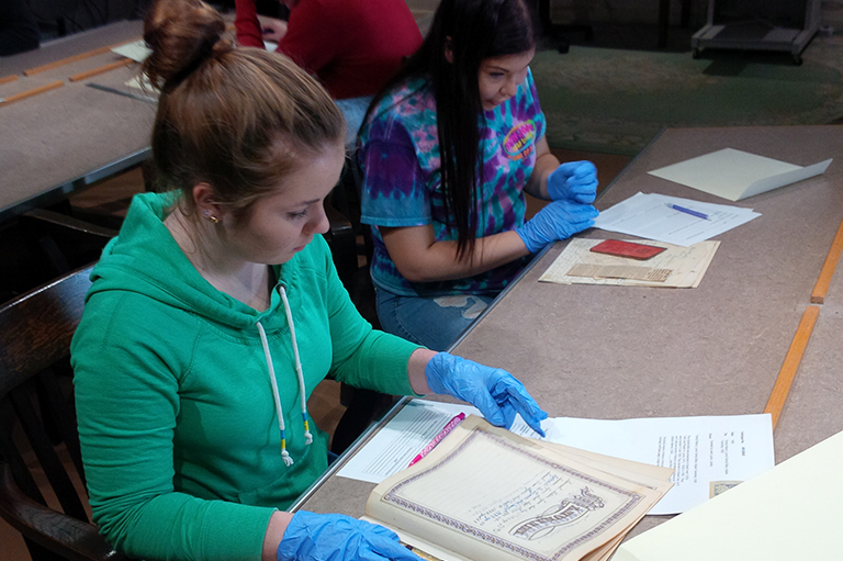 DHP students Hannah & Kathryn learn archival analysis and research methods using documents from the DCMA Archives, in preparation for The Canada Case.The Digital Historian Project (DHP)TM