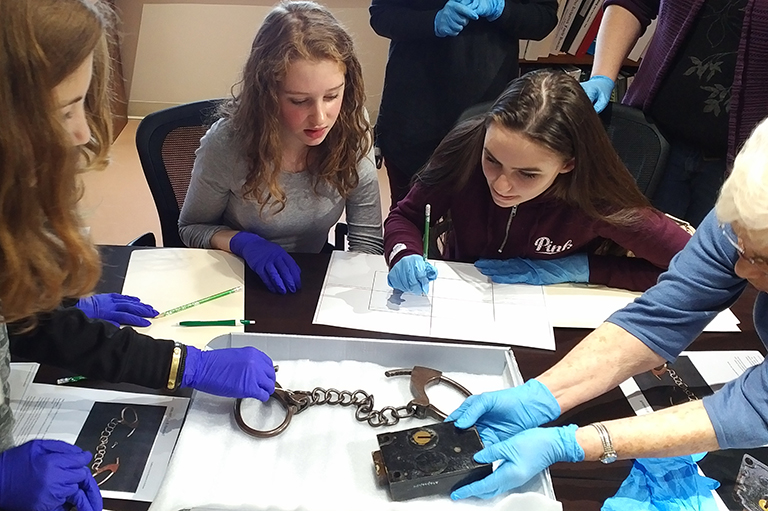Again, tasks must be hands-on and have clear authenticity. Primary materials from the collection or archives should be in their hands as soon as they arrive, if at all possible. Phones should be out and photography should be underway. Students should be comparing items, measuring and suggesting narratives. Working closely with the museum staff, pre-select many more artifacts than you have students on the visit. This is to allow for student-choice, but be sure to task them with “responsibility” for the item. Ensure that there is appropriate archival detail on each artifact.