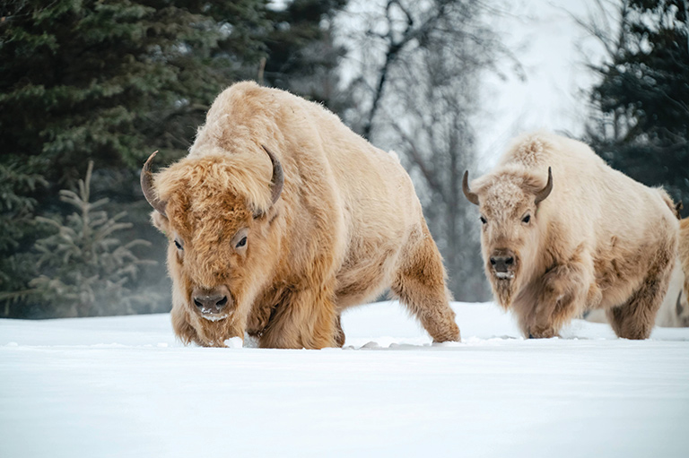 When I have a return visit in winter, I take Metis Crossing’s signature wildlife tour. Knowledge Holder Lilyrose Meyers drives me through five paddocks to see plains and wood bison, elk and Percheron horses.